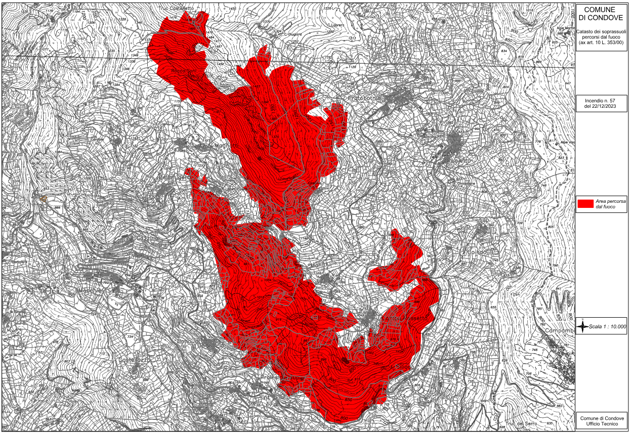 Si riportano di seguito le mappe dei maggiori incendi verificatisi dal 2017 in poi ricordando che le zone ove vige il divieto di caccia non sono tabellate. Per quelli di minore entità e per i quali al momento il Comprensorio non dispone della perimetrazione dei confini, come negli anni precedenti, si rimanda ai singoli uffici comunali.